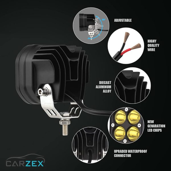 Carzex Brings You Yellow & White Square Fog LED 4 Lens Pod Light for Motorcycles & Scooty (With Switch)