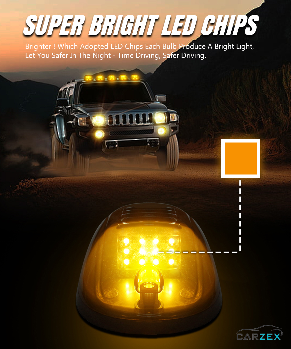 Built-in Led / SMD hummer style roof marker lights approx 4.5 inches in length Universal Use for cars, jeeps, SUVs Attractive Marker Lights makes vehicle visible from long distance.