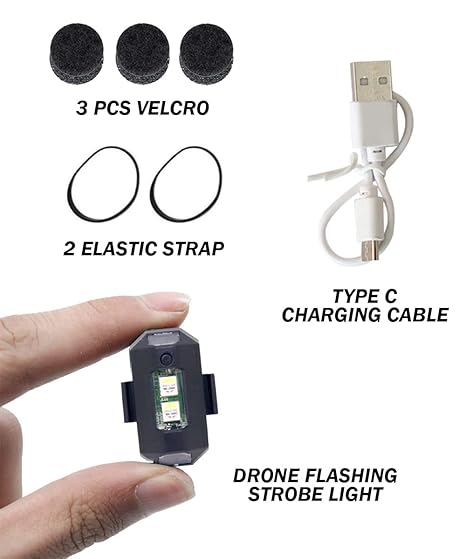7 Light Colors & 25 Light Modes: There are 7 colors: white, red, green, blue, yellow, pink purple, ice blue, and different light modes: static, fast flashing, slow flashing, SOS & civil aviation mode. The mini drone light adopts an upgraded design, it can work up to 31 different light modes and has a memory function.