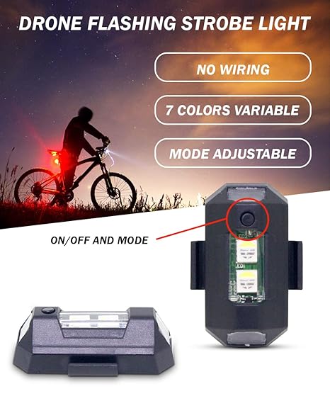 CARZEX Brings Drone Signal Warning Light for Car/Bike/Bicycle Bike Helmet with 7 Different Lights. These lights can be attached to pet collars, backpacks, helmets, and jogging or walking gear. Use the included fasteners to securely strap the lights onto boating bows and sterns, drones, bicycles, arms, wrists, and ankles. Suitable for installation in cars, motorcycles, bicycles, and Drones.