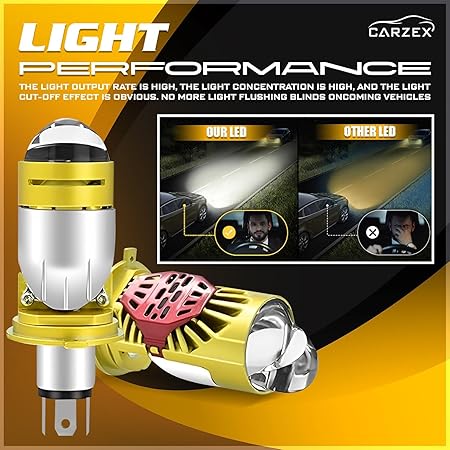 H4 led headlight bulbs with projector lens. Low beam: The irradiation angle is wider, and you can find the clear cut-off line. Will not blind coming drivers. High beam: The light is concentrated and longer range. You can see the road over 500ft. Solved the problem of the beam change of ordinary H4 LED bulbs not being obvious when switching between high and low beams.