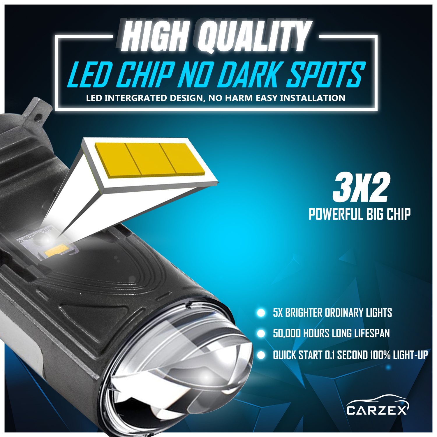 CARZEX Brings You Premium Quality Mini Projector Lens H4 Led Car Headlight Bulb,100W/ 20,000 Lumens Super Bright White 6500K Headlight Conversion Kit for Cars.