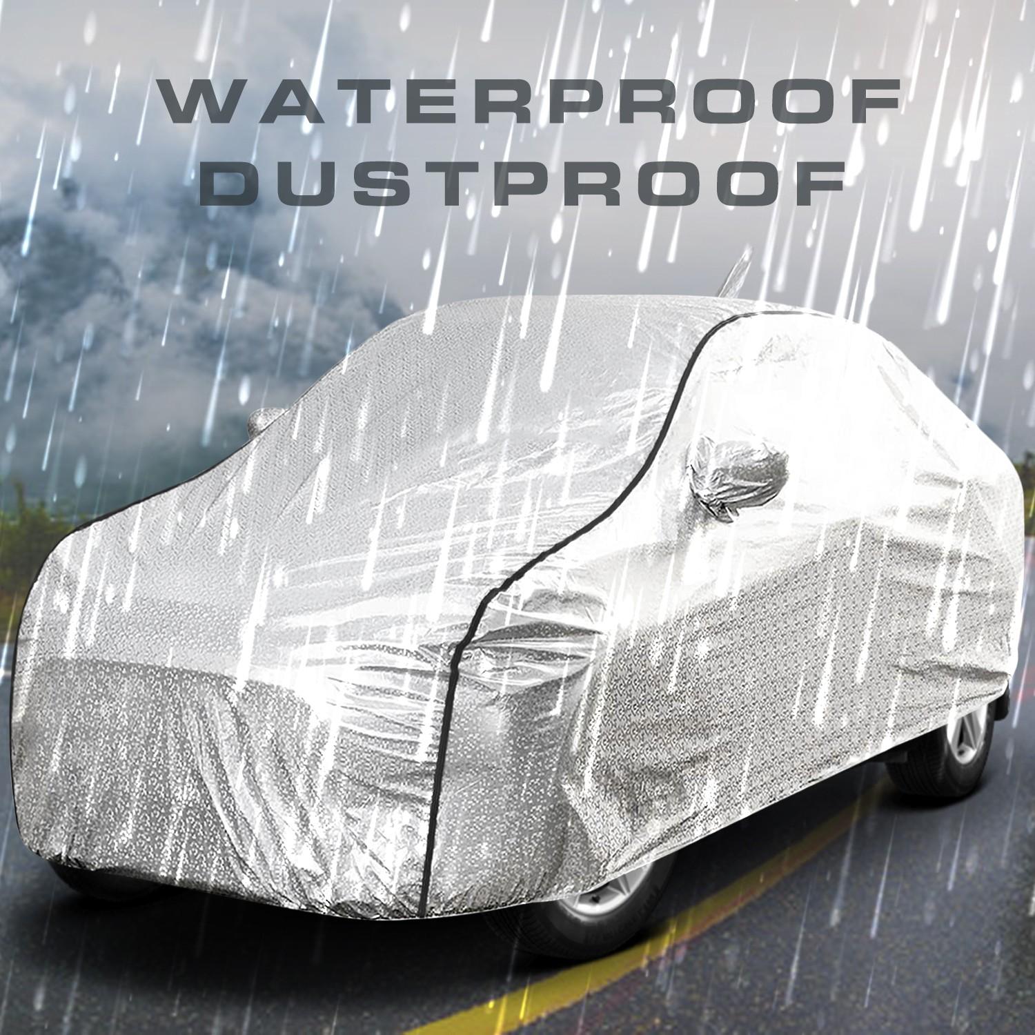 CARZEX Brings you Stylish and Elegant American Design Diamond Silver Colour Full Sized Fitting and a Full Bottom Elastic Waterproof Car Cover with 2 Mirror Pockets & 1 Antenna Pocket, which gives a whole new look to your car and provides extra care to Antenna & side mirrors.